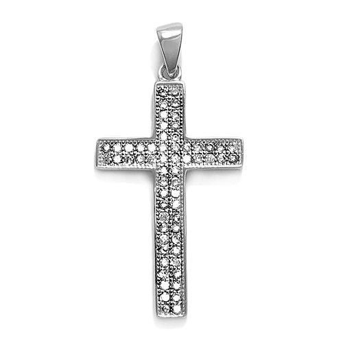 A lustrous pendant of a cross designed and embellished with CZ stones that glisten in the light. Pendant only. Height: 32mm or 1 1/4" (not including bail) Width: 18mm or 11/16" (at its...